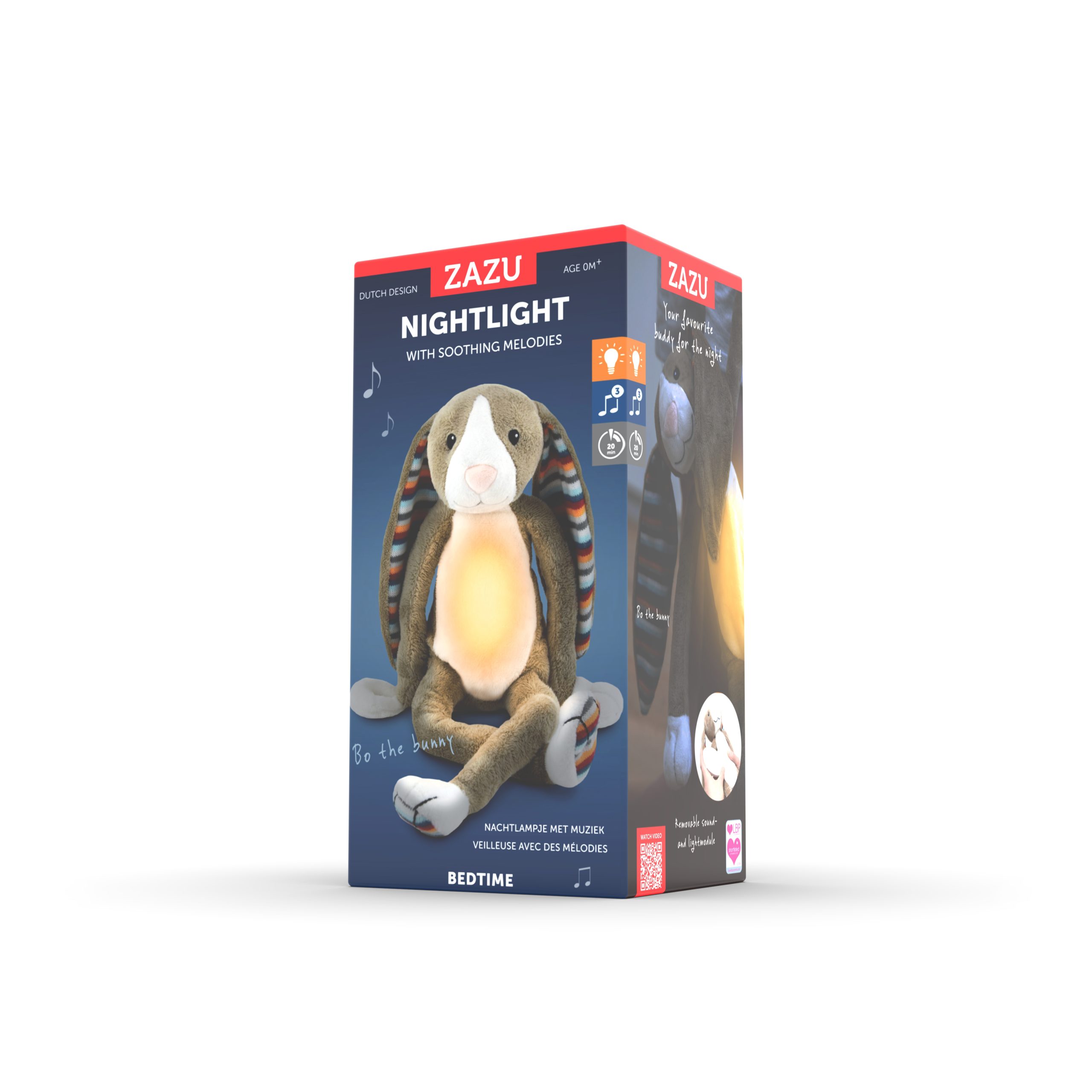 O seu filho tem medo do escuro? Estes peluches têm uma luz de presença suave na barriga e também tocam melodias tranquilas. Basta apertar a barriga para ligar e desligar-se-á automaticamente após 20 minutos. O peluche é lavável (remova o módulo previamente).