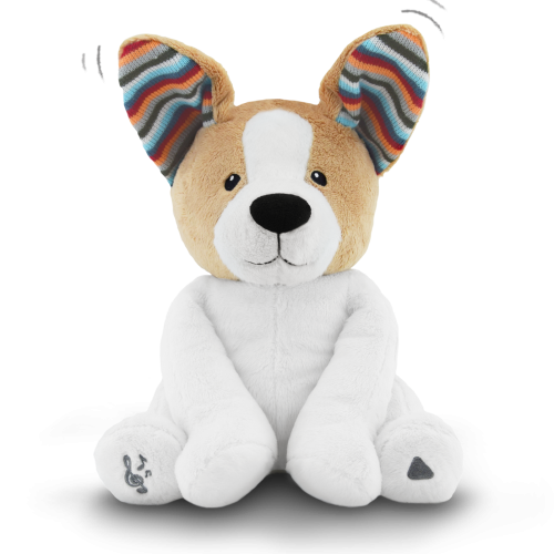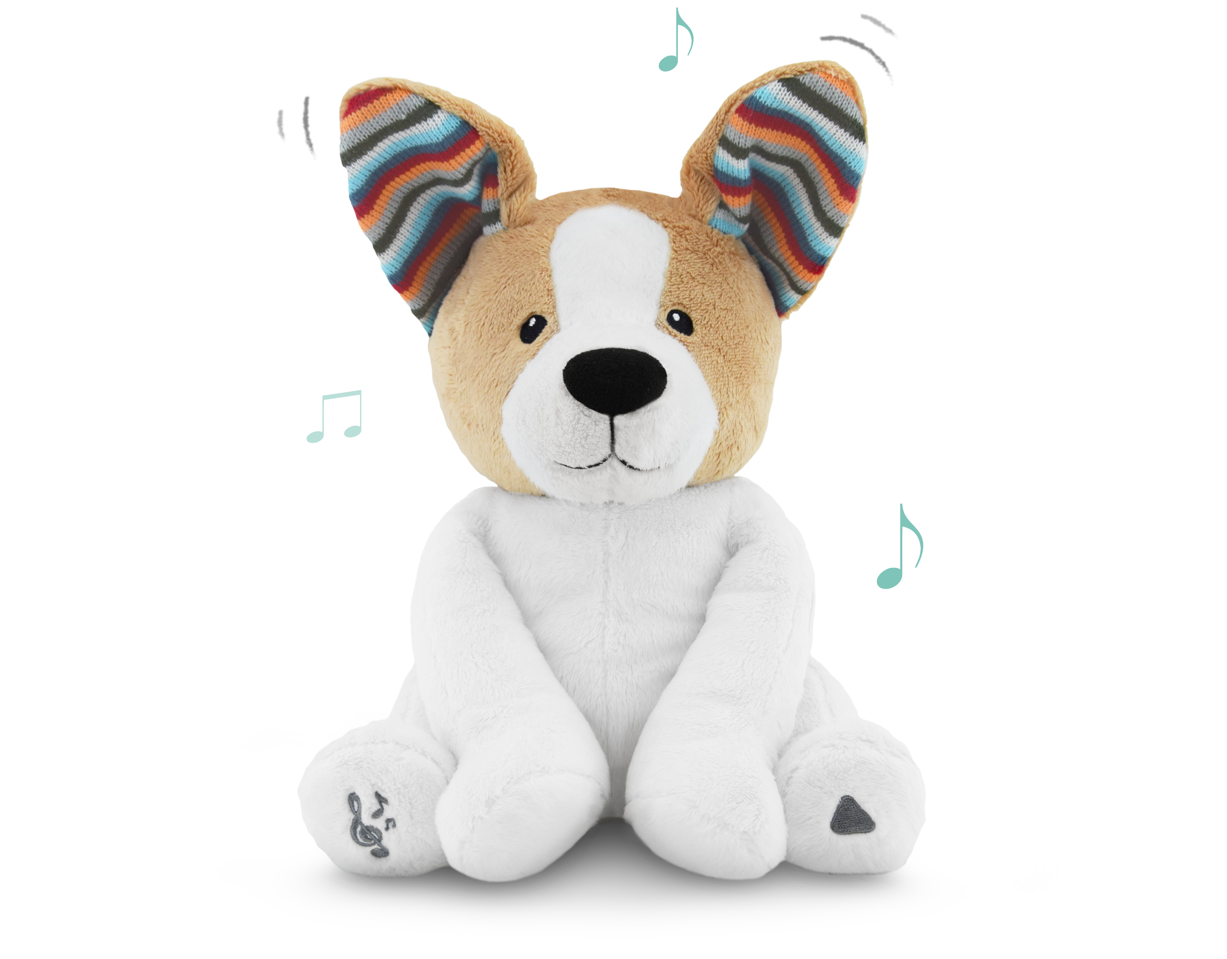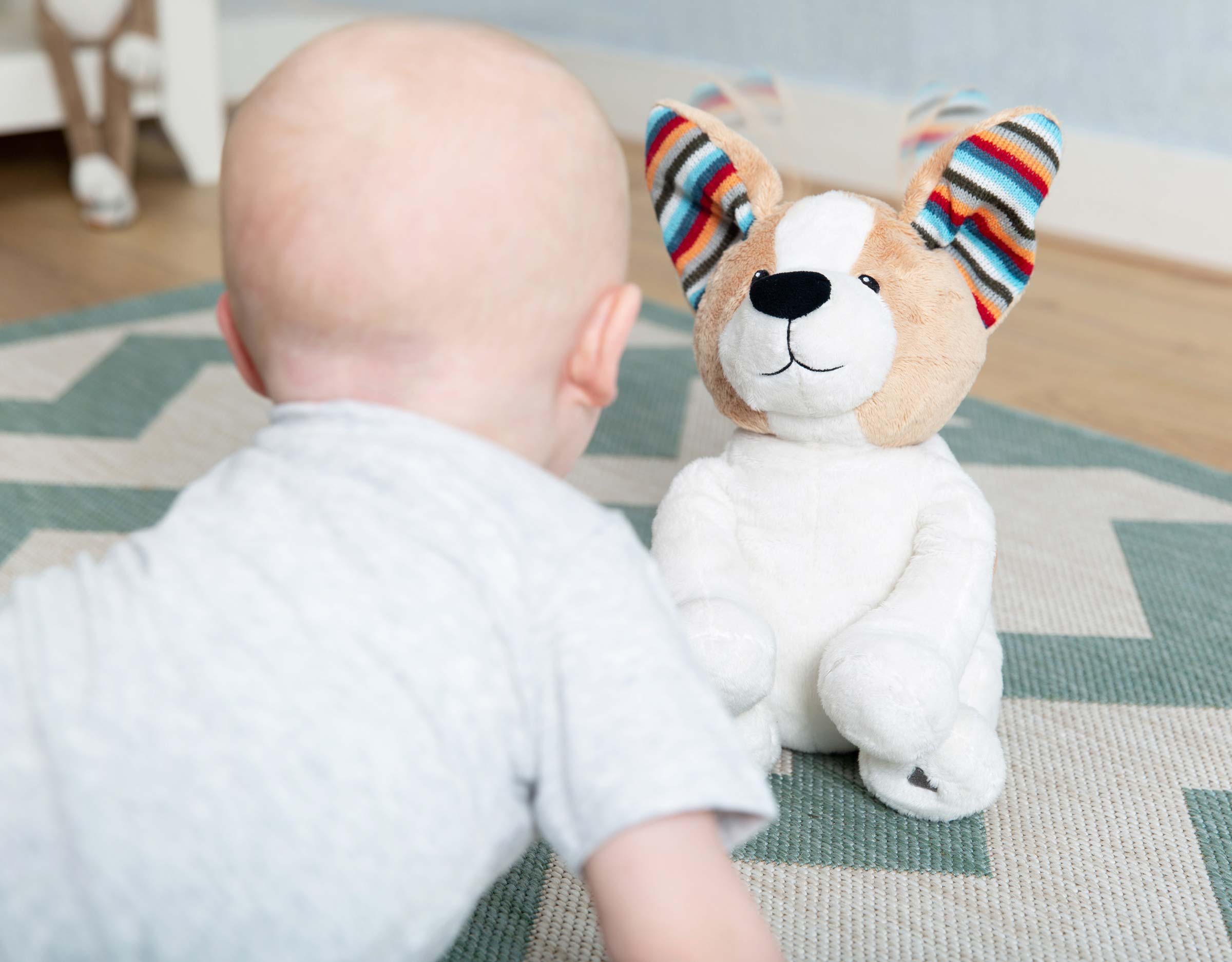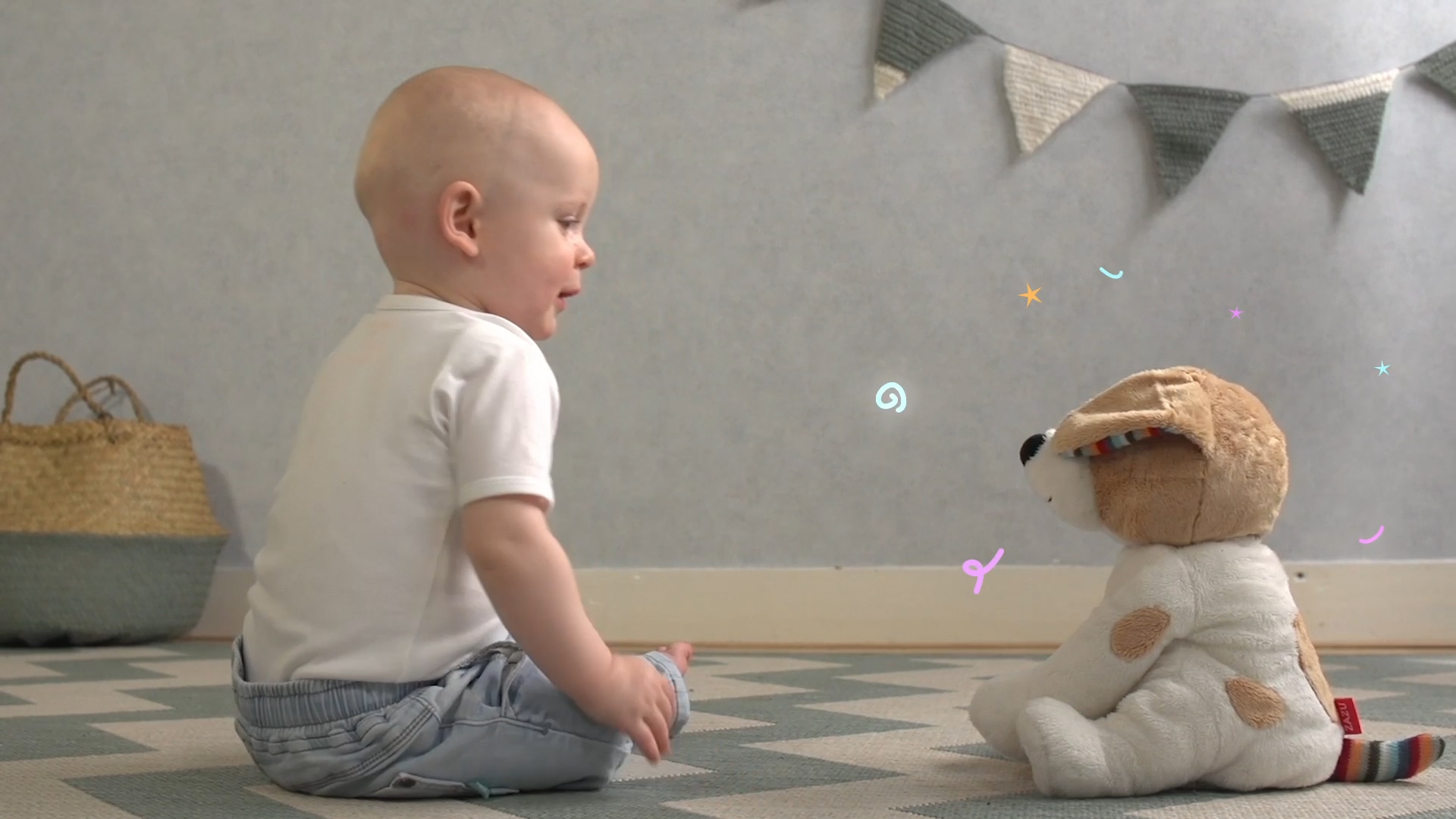 Mantém o teu bebé entretido a cantar ou a jogar ao “cucu” com o Danny, o cão. O teu bebé vai adorar e vai tentar acompanhar imitando os movimentos.